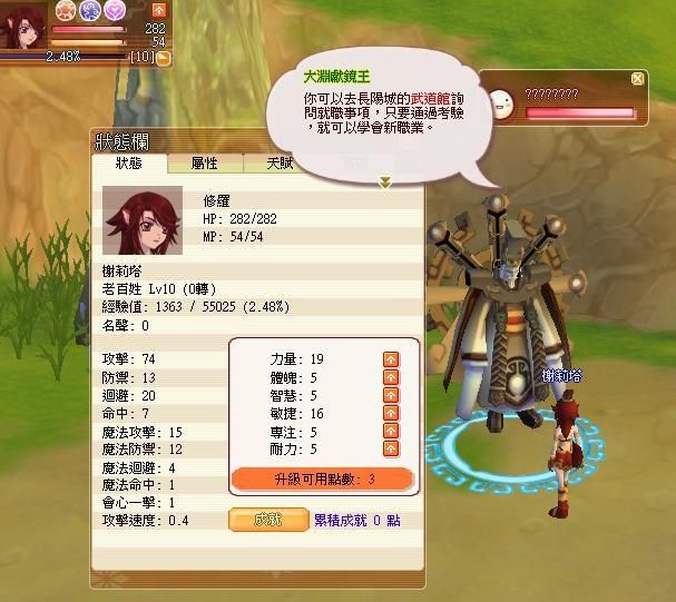 想知道自己的能力達到了沒,就打開工具列上的﹝狀態﹞,並選擇﹝天賦﹞查詢。