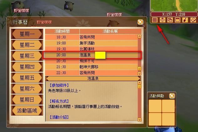 1. 滑鼠左鍵點擊左下角對話框上的採集圖示。 2. 滑鼠左鍵點擊採集想要使用的﹝採集道具﹞兩下,共可放入四組的採集工